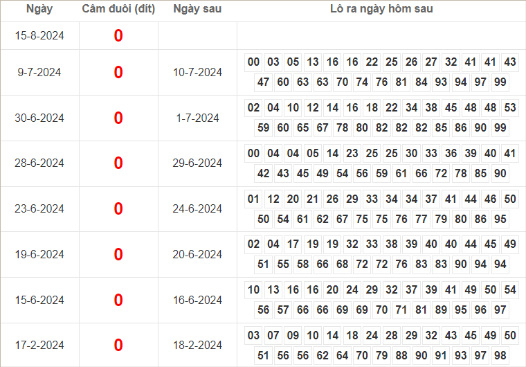 Dàn lô hôm nay miền Bắc bất bại ngày 16/8/2024