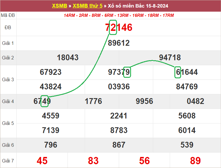 Xem lại bảng KQXSMB ngày 15-8-2024 hôm qua