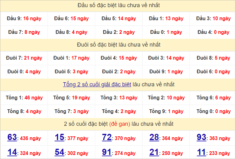 Thống kê hai số cuối giải đặc biệt miền Bắc ngày 16/8