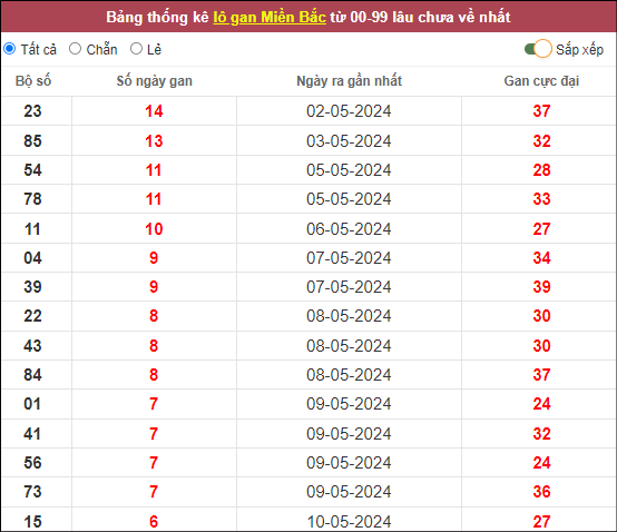 ⭐️Thống kê lô gan miền Bắc lâu ra nhất: 23 – 85 – 54 – 78 – 11