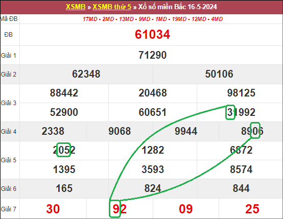 Xem lại bảng KQXSMB ngày 16/5/2024 hôm qua