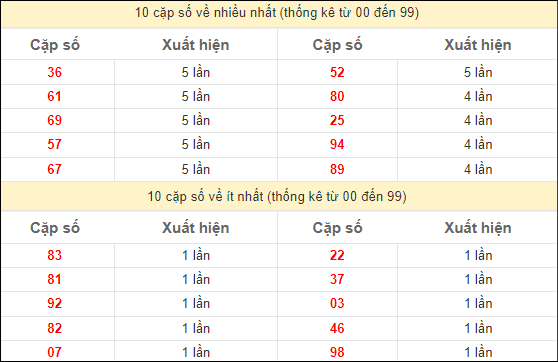 Thống kê hai số cuối giải đặc biệt miền Bắc ngày 17/5