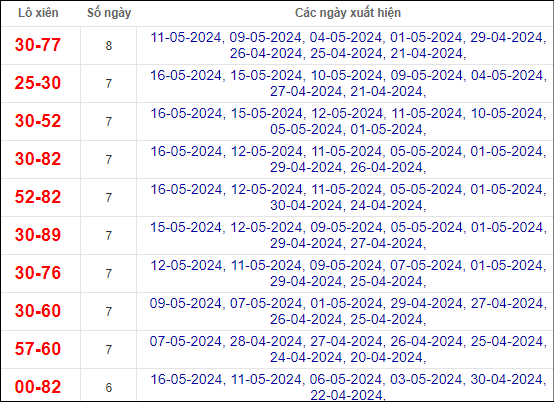 ⭐️ Thống kê tần suất lô về nhiều trong 30 ngày qua: 30, 77, 82, 92 (16 lần), 57 (15 lần), 25, 52, 95 (14 lần)