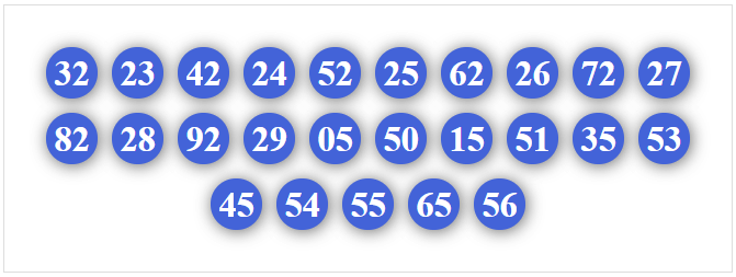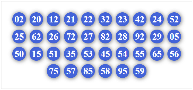 00, 01, 02, 03, 04, 05, 06, 07, 08, 09, 30, 31, 32, 33, 34, 35, 36, 37, 38, 39