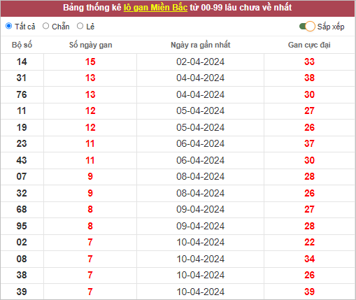 Thống kê lô tô miền Bắc hôm nay 18/4/2024