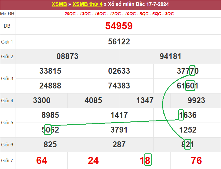 Xem lại bảng KQXSMB ngày 17-7-2024 hôm qua