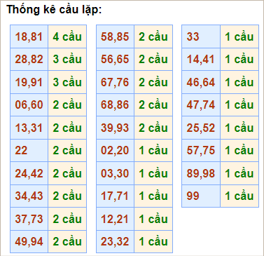 💰 Cầu lô hai nháy về liên tục 4 ngày trở lên: 60