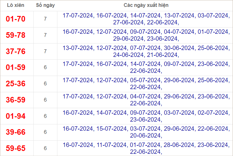 Cầu lô chạy 7 ngày qua (cầu dài nhất)