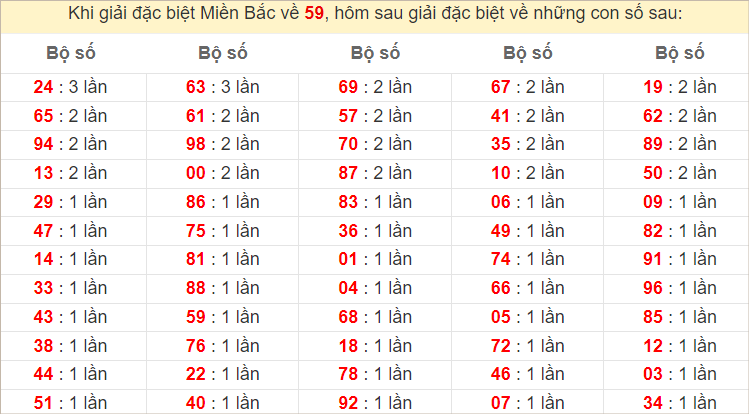 ⭐️ Thống kê tần suất lô về nhiều trong 30 ngày qua: 59 (17 lần), 66, 89 (15 lần), 76 (14 lần), 23, 94 (13 lần), 01, 32 (12 lần)
