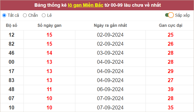 ⭐️ Lô gan MB lâu ra nhất: 12 – 82 – 46 – 00 – 17