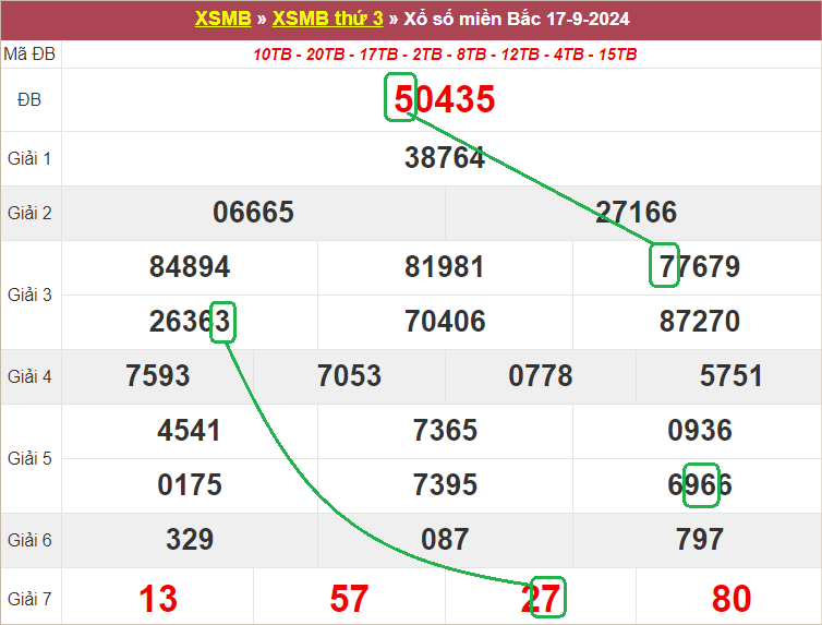 THỐNG KÊ LÔ TÔ KẾT QUẢ XSMB NGÀY 17-9-2024