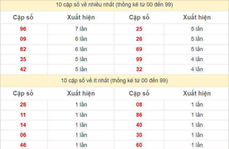 Các cặp số nóng nhất hôm nay: 32 – 42 – 69 – 16 – 19