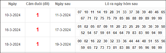 - Xuất hiện đuôi lô câm 1, hôm sau đánh ngay con 01 – 11