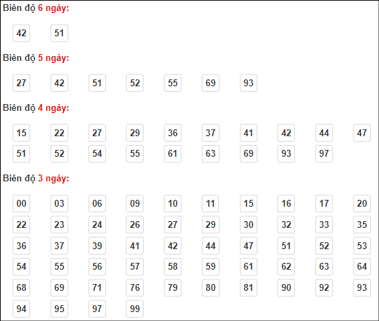 Cặp lô 26, 31, 73 có độ dài 5 ngày.