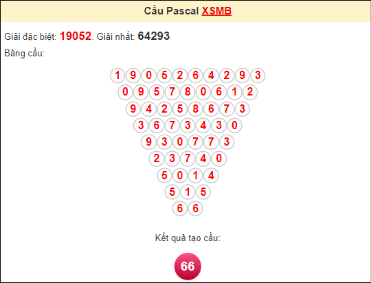 Kết quả từ soi cầu Pascale là cặp số may mắn: 66