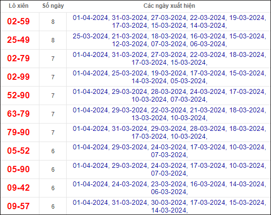Dàn lô hôm nay miền Bắc bất bại ngày 2/4/2024