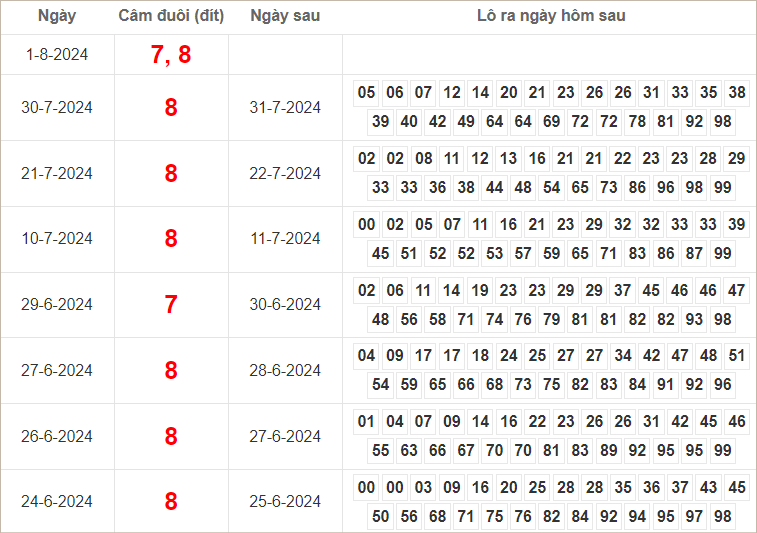 Dàn lô hôm nay miền Bắc bất bại ngày 2/8/2024
