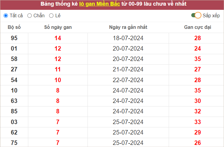 ⭐️Thống kê lô gan XSMB lâu ra nhất: 95 – 01 – 58 – 27 – 54