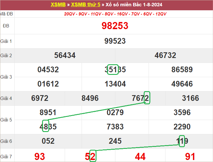 Xem lại bảng KQXSMB ngày 1-8-2024 hôm qua