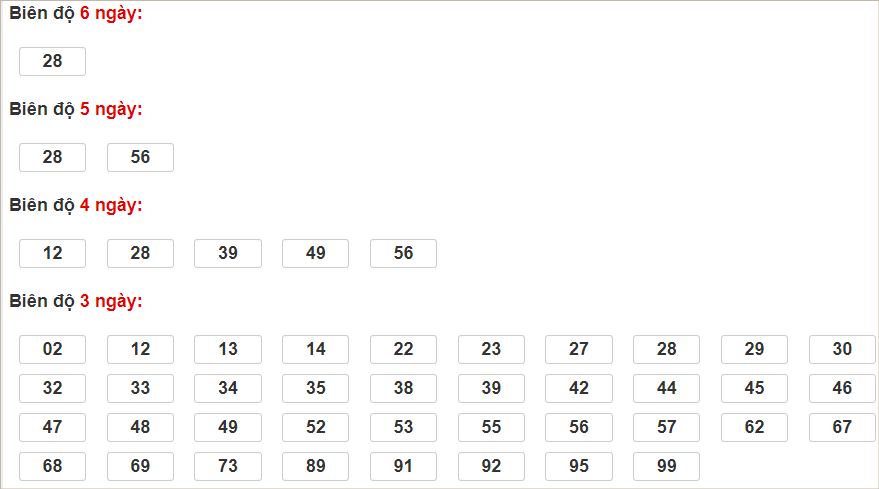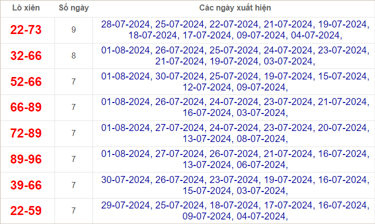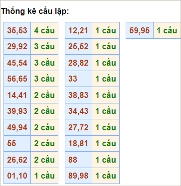Cặp lô 35, 42, 84, 99 có độ dài 3 ngày.