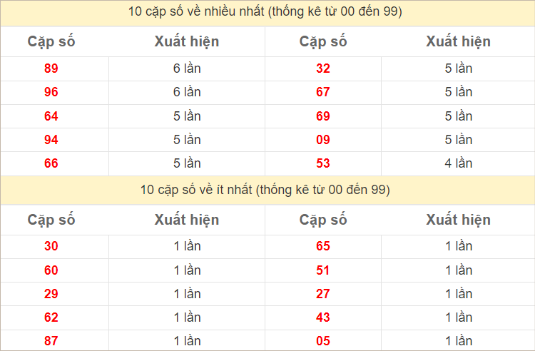 Các cặp số nóng nhất hôm nay: 29 – 72 – 22 – 92 – 89