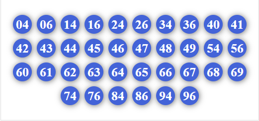 30, 31, 32, 34, 35, 36, 37, 38, 39, 50, 51, 52, 53, 54, 56, 57, 58, 59, 70, 71, 72, 73, 74, 75, 76, 78, 79, 90, 91, 92, 93, 94, 95, 96, 97, 98