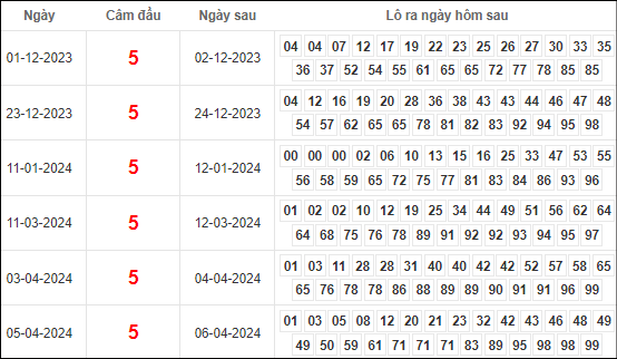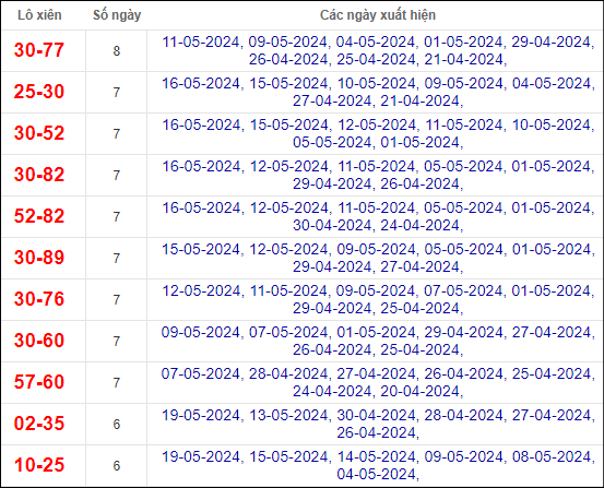Cầu lô chạy 5 ngày qua (cầu dài nhất)