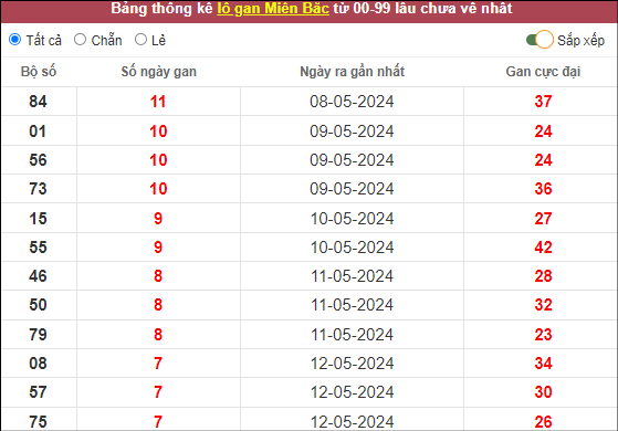 ⭐️ Lô gan miền Bắc lâu ra nhất: 84 – 01 – 56 – 73 – 15