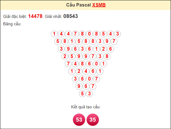 Kết quả từ soi cầu Pascale là cặp số may mắn: 53 – 35