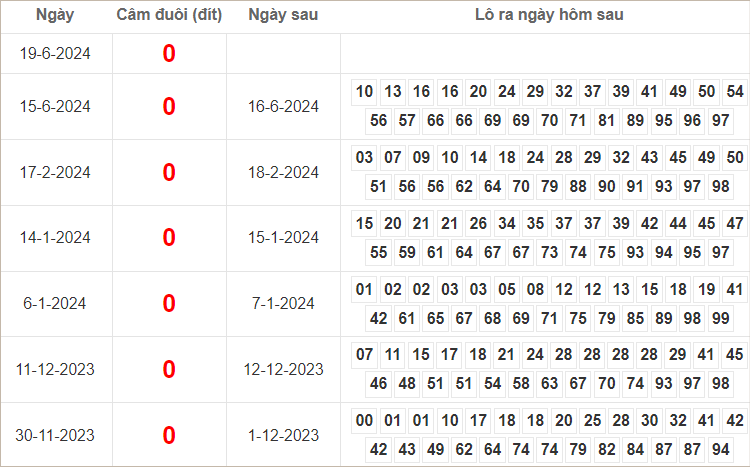 Dàn lô hôm nay miền Bắc bất bại ngày 20/6/2024