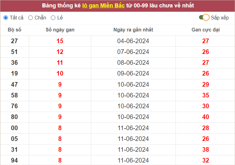 Thống kê lô tô miền Bắc hôm nay 20/6