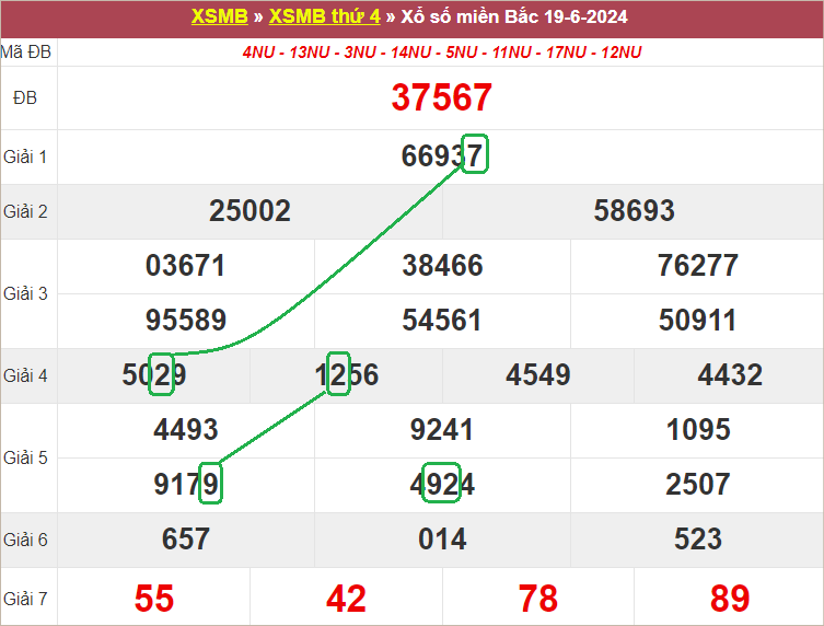 Xem lại bảng KQXSMB ngày 19-6-2024 hôm qua