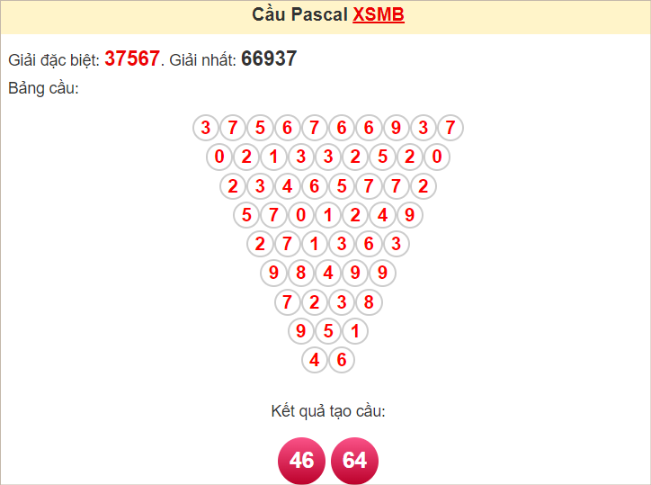 Kết quả từ soi cầu Pascale là cặp số may mắn: 46 64