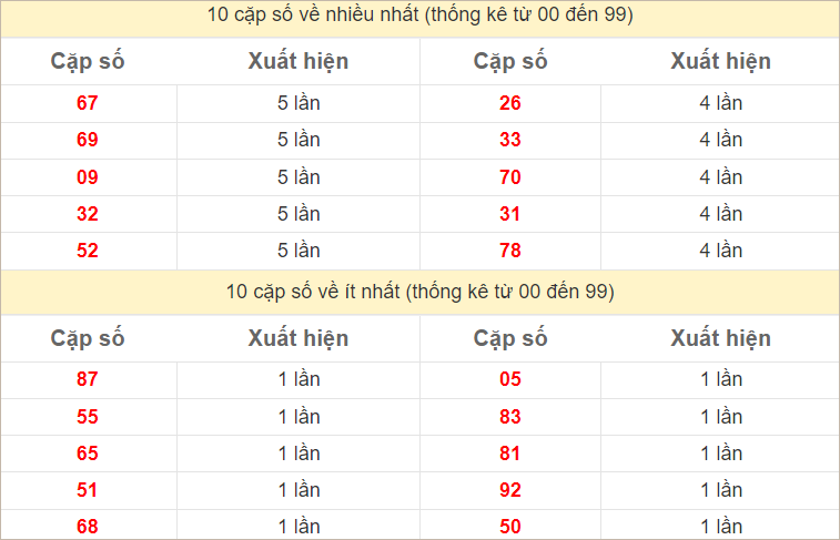 Các cặp số nóng nhất hôm nay: 69 – 96 – 19 – 27 – 21
