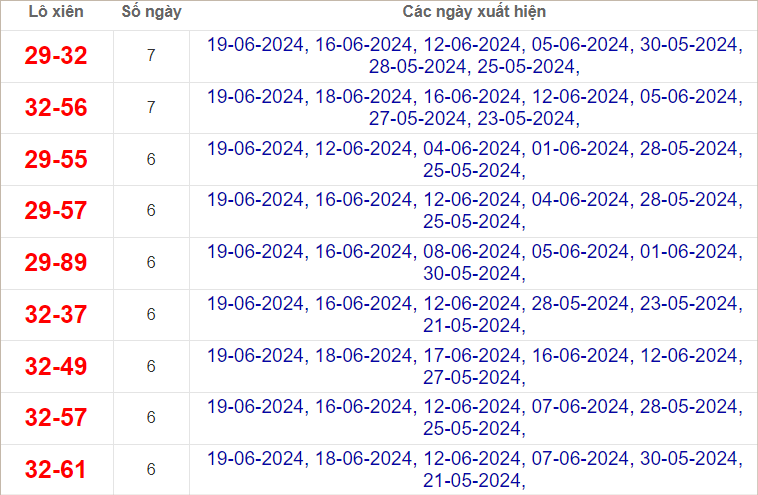 THỐNG KÊ LÔ TÔ KẾT QUẢ XSMB NGÀY 19-6-2024