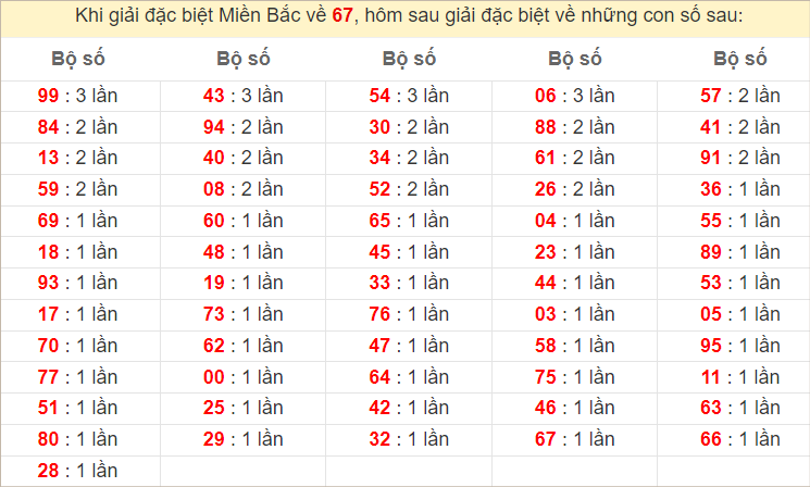 Thống kê hai số cuối giải đặc biệt miền Bắc ngày 20/6