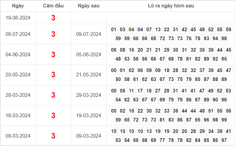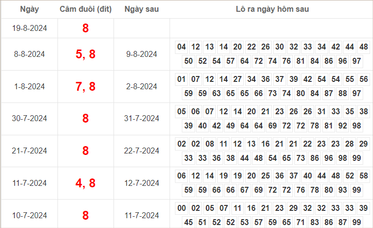 Dàn lô hôm nay miền Bắc bất bại ngày 20/8/2024