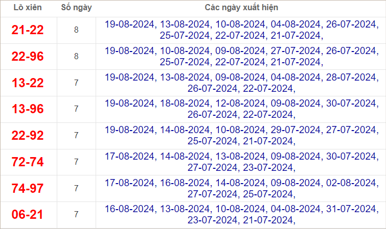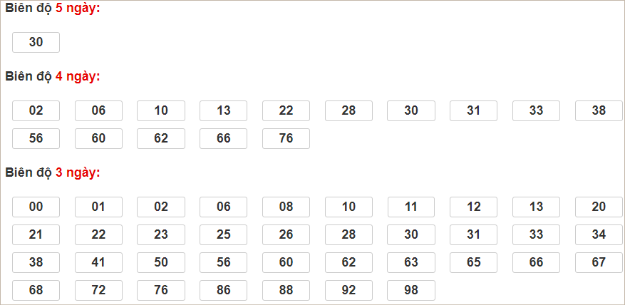 Cặp lô 37, 60, 84 có độ dài 3 ngày.