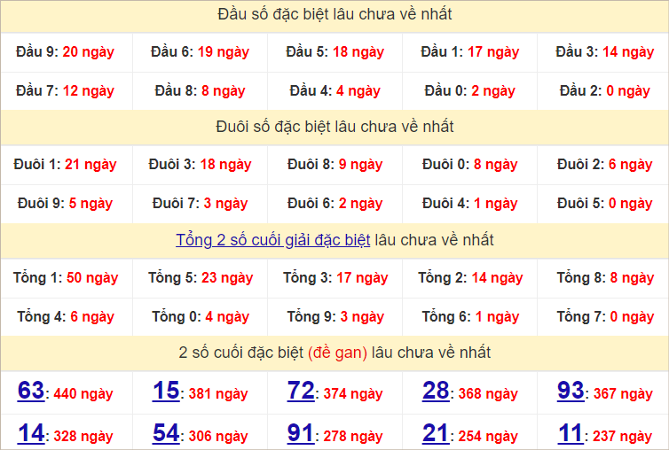 Thống kê hai số cuối giải đặc biệt miền Bắc ngày 20/8