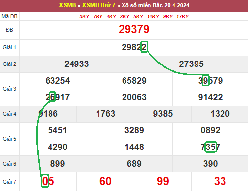 Xem lại bảng KQXSMB ngày 20/4/2024 hôm qua