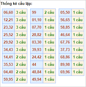 ♦ Lô kép: 66 – 88 – 99