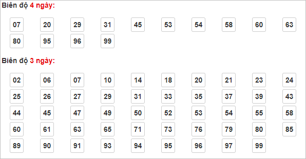 Cặp lô 07 (vị trí ghép cầu 74-89), 20, 29, 31, 45, 53, 54, 58, 60, 63, 80, 95, 96, 99