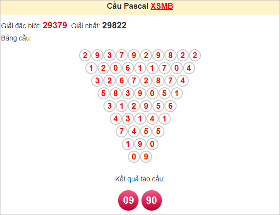 Kết quả từ soi cầu Pascale là cặp số may mắn: 09 90