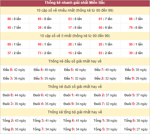 Thống kê lô tô miền Bắc hôm nay 21/4/2024
