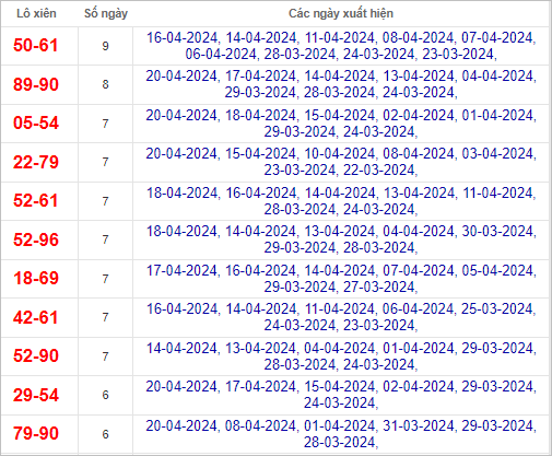 Cầu lô chạy 4 ngày qua (cầu dài nhất)