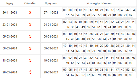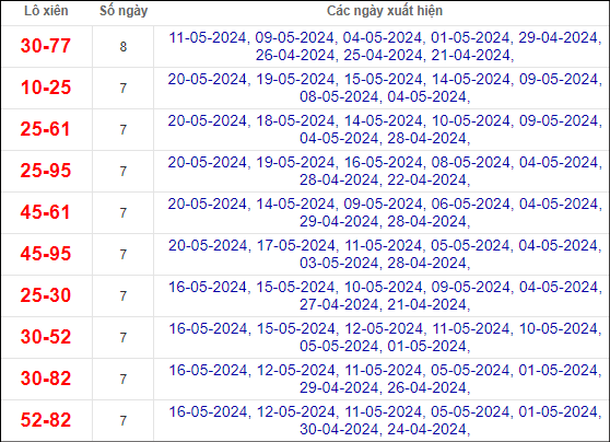 Cặp lô 28, 58, 63 có độ dài 3 ngày.