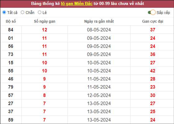 ⭐️Thống kê lô gan MB lâu ra nhất: 84 – 01 – 56 – 73 – 15