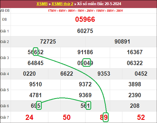 Xem lại bảng KQXSMB ngày 20/5/2024 hôm qua