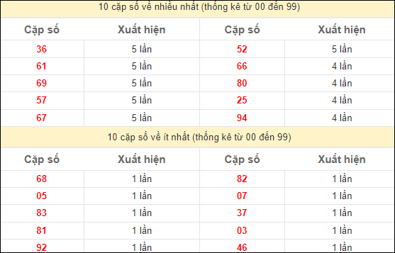 Thống kê hai số cuối giải đặc biệt miền Bắc ngày 21/5
