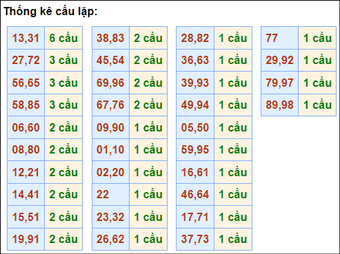 Cầu lô chạy 6 ngày qua (cầu dài nhất)